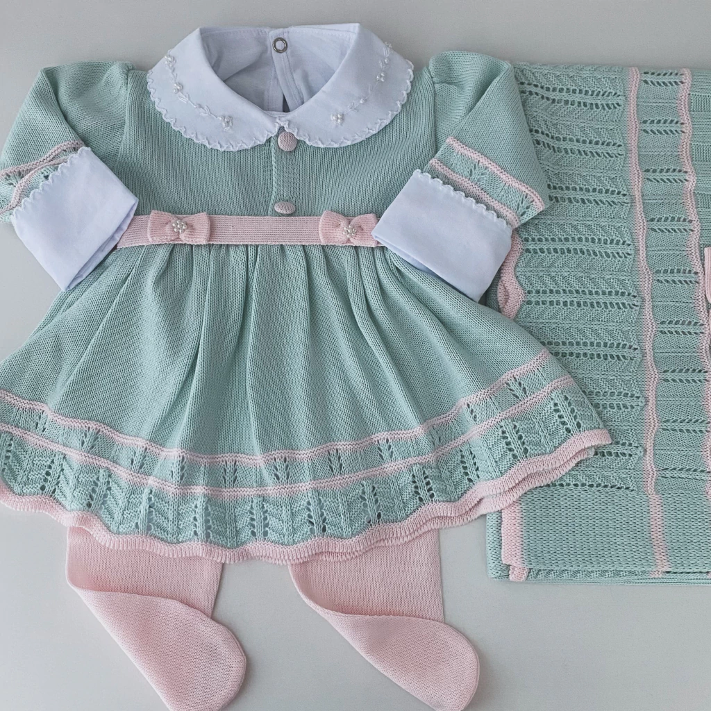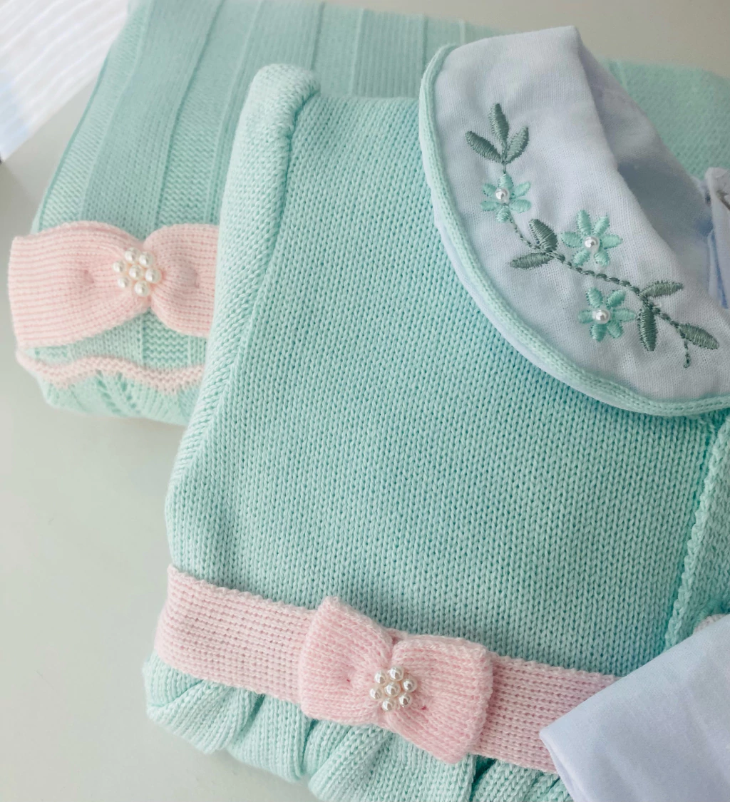 Com a Saída de Maternidade Perfection Verde Água com Rosa, você garante o conforto e a suavidade que seu bebê merece. Feita em tricot 100% acrílico antialérgico, ela é perfeita para a pele delicada do recém-nascido, oferecendo um toque suave e aconchegante. O design encantador, com detalhes em rosa, transmite leveza e harmonia para o primeiro look do seu bebê.